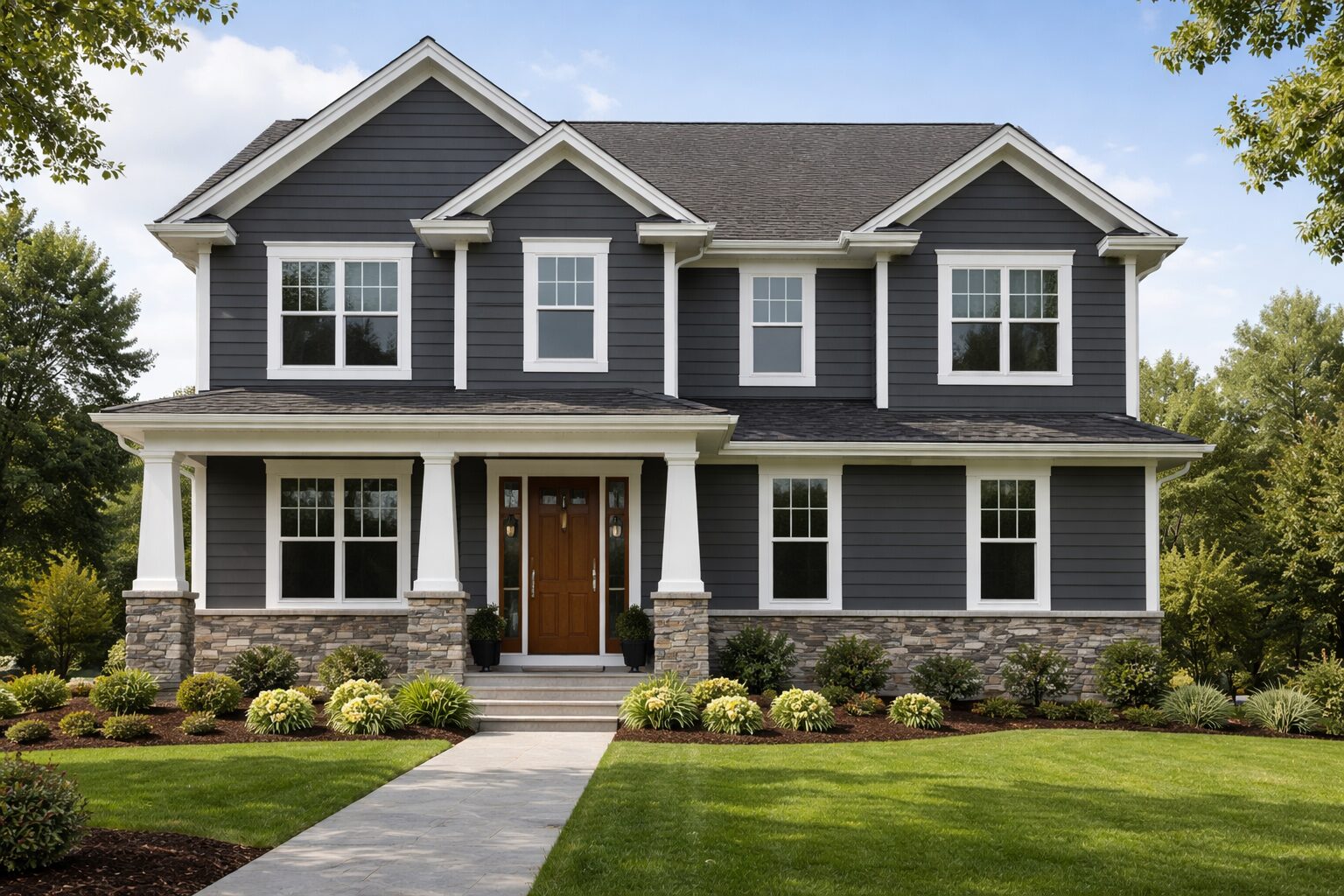 For homeowners planning an exterior refresh, this trend can be achieved through fiber cement options (including James Hardie color selections) or by choosing vinyl siding colors that sit in the charcoal/graphite range.