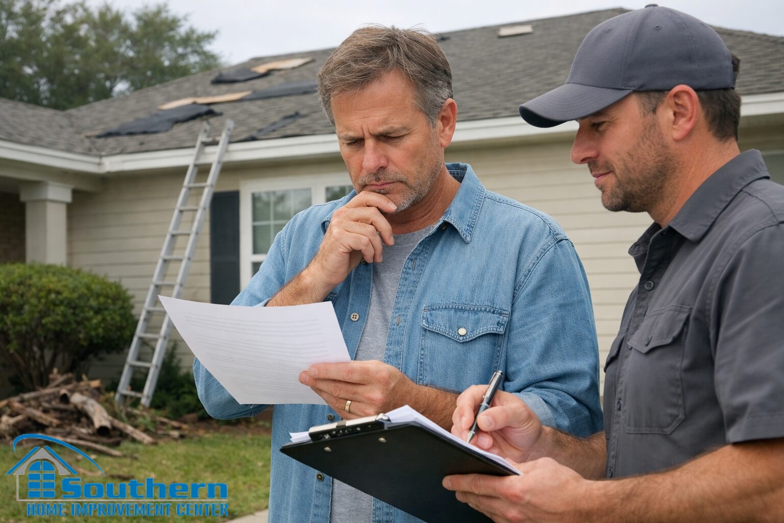 Southern Home Improvement Center (SHIC) can help you document visible roof damage, separate urgent stabilization from larger repair decisions, and review the project scope in plain language before the process becomes more confusing. Call Slidell at (985) 643-6611, Baton Rouge at (225) 766-4244, or New Orleans / Jefferson at (504) 833-1835, or fill out the estimate form below to request a no-pressure inspection and written project guidance.