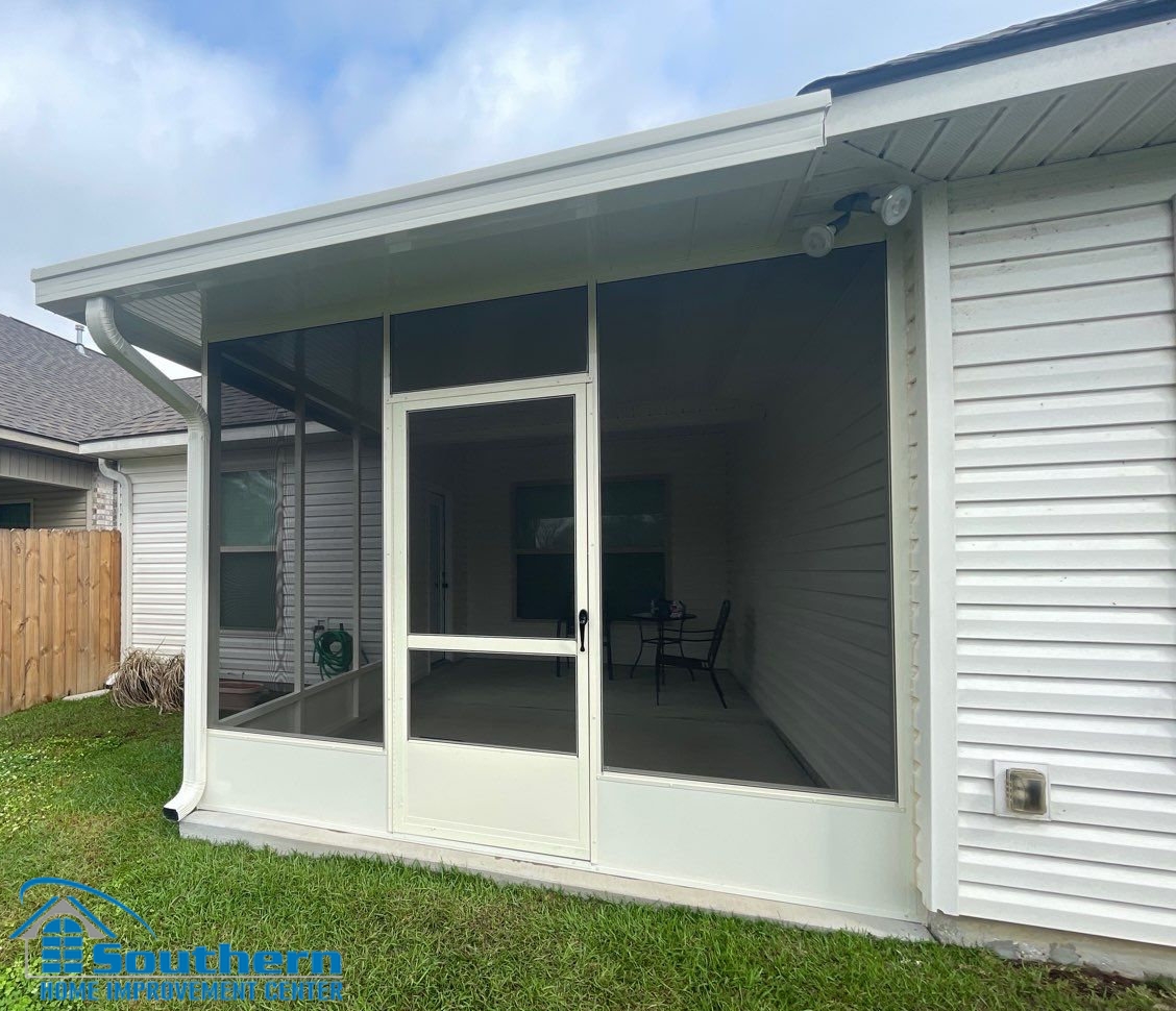 If you are planning a screen room, a screened patio, or a compact aluminum patio cover in Baton Rouge, Southern Home Improvement Center (SHIC) can help you evaluate footprint, roof style, drainage details, finish options, and overall layout before construction begins. Call the office that fits your area below, or fill out the form on the page to request a free estimate.