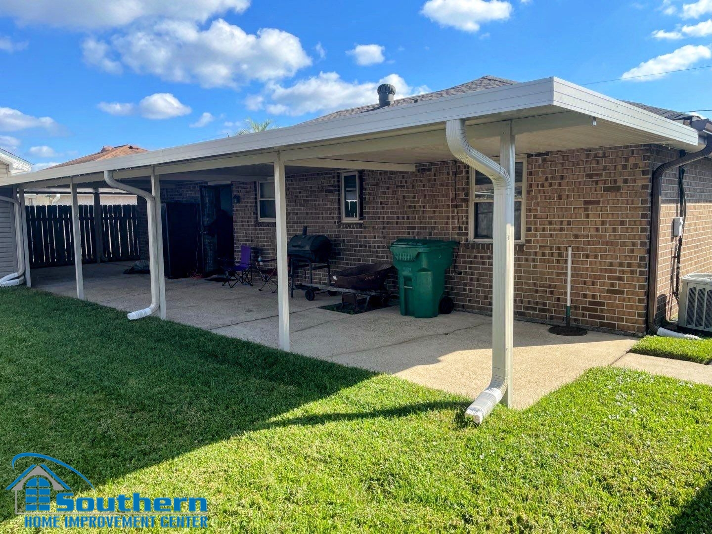 If you want a flat pan aluminum patio cover or a patio cover and carport-style layout tailored to your home, request a free estimate today and share any photos through the contact form. Call (985) 643-6611 or (225) 766-4244, and Southern Home Improvement Center (SHIC) will help you choose the best patio cover configuration for your home in Southeast Louisiana or the Mississippi Gulf Coast.