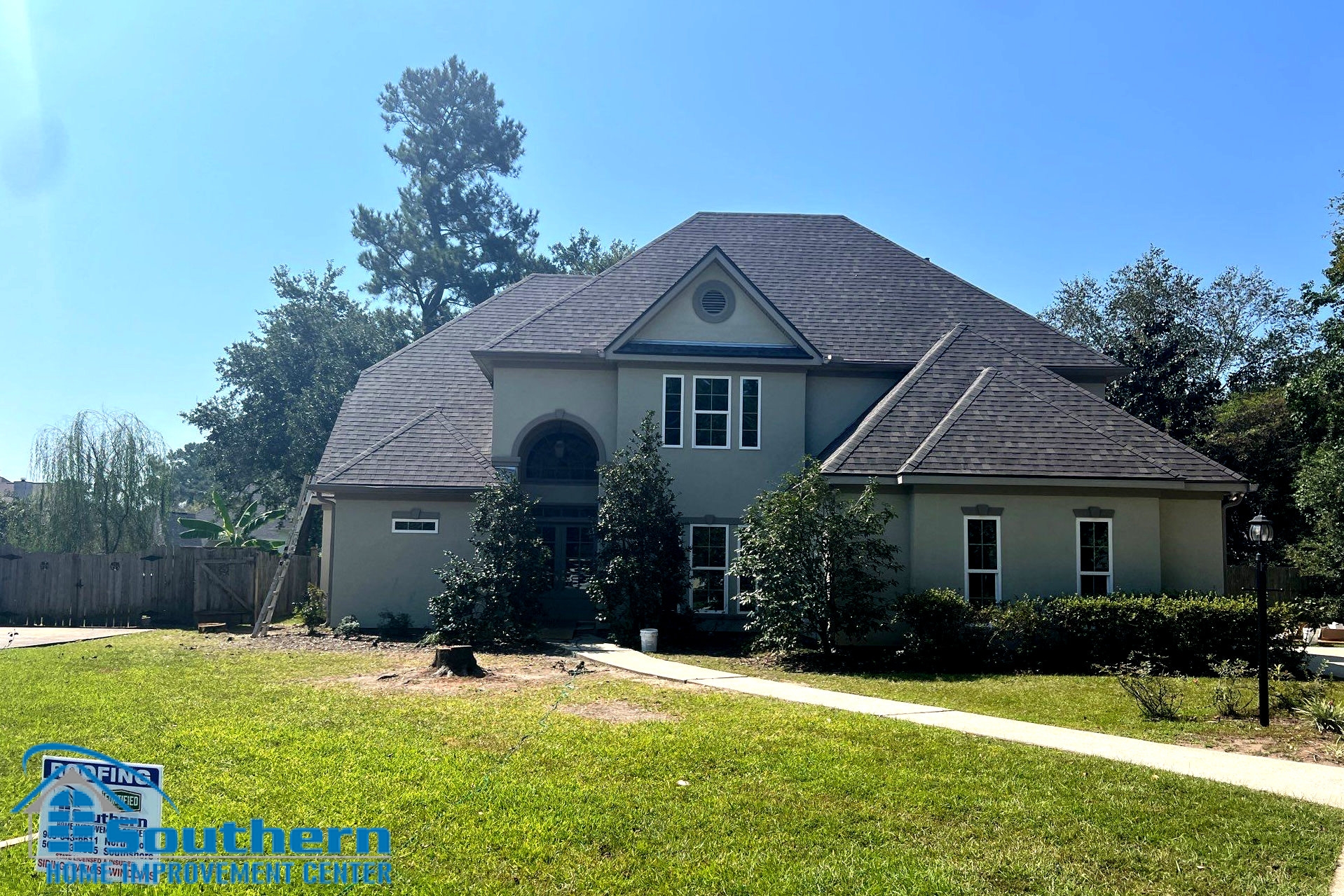 Southern Home Improvement Center (SHIC) rebuilt this Covington, Louisiana roof to FORTIFIED-aligned practices for Northshore weather. The assembly includes a sealed deck, re-nailing the sheathing with ring-shank fasteners, and balanced ventilation — a smarter long-term upgrade than a patch for St. Tammany Parish homes.