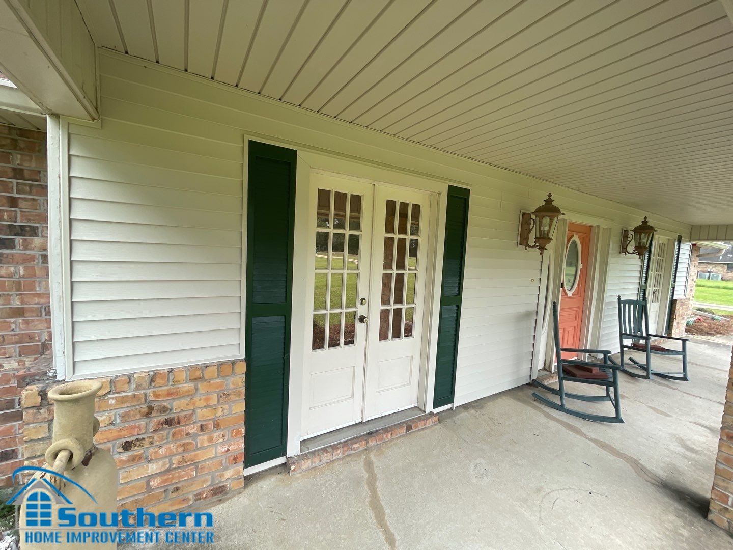 Looking for vinyl siding in Zachary, LA that can refresh a porch and stand up to Gulf Coast weather? This case shows what a precise, craftsman-level install looks like. On a home in Zachary, we removed the aging cladding, wrapped the walls for moisture control, and installed CertainTeed Encore® in Herringbone — clean lines around the French doors, crisp corners, and a brighter entry that complements the brick and shutters. If you’re just starting research, skim our core hub Our Services and see how we coordinate exterior work across the region.
